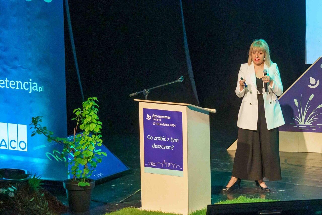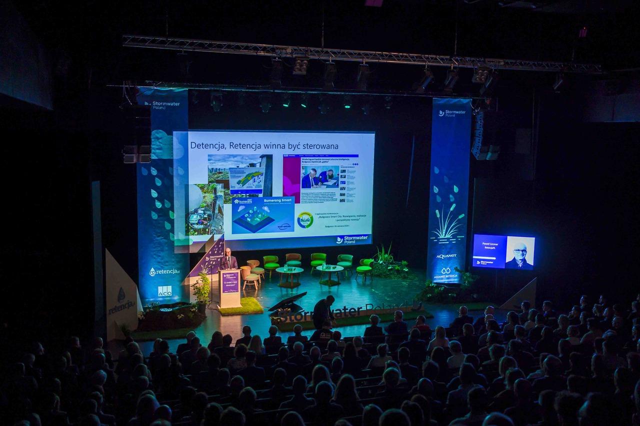 Konferencja Stormwater Poland 2024 odbyła się w dniach 17–18 kwietnia 2024 r. w Poznaniu i była jedną z najbardziej praktycznych edycji. Pierwszy dzień rozpoczęto debatą o znaczeniu retencji i współpracy instytucji wodnych, a następnie dyskutowano o misji firm wodociągowych, finansowaniu inwestycji retencyjnych oraz monitoringu sieci kanalizacji deszczowej. Drugiego dnia silnie wybrzmiał międzynarodowy wymiar wydarzenia – zaprezentowano rozwiązania ze Szwecji i Korei, pokazujące jak różne kraje radzą sobie z wyzwaniami zmian klimatu. W programie znalazły się też wystąpienia dotyczące planowania urbanistycznego, błękitno-zielonej infrastruktury i innowacyjnych materiałów budowlanych. Nie zabrakło praktycznych akcentów: warsztat Hauraton i symboliczne otwarcie ogrodu deszczowego. Wybór Poznania na gospodarza konferencji miał wymiar szczególny – miasto to od lat rozwija pionierskie systemy gospodarowania wodami opadowymi, a jego doświadczenia stały się punktem odniesienia dla innych ośrodków w Polsce. Hasło „Co zrobić z tym deszczem?” trafnie oddawało ducha edycji: szukania konkretnych, sprawdzonych odpowiedzi na pytania o rolę wód opadowych w adaptacji miast.