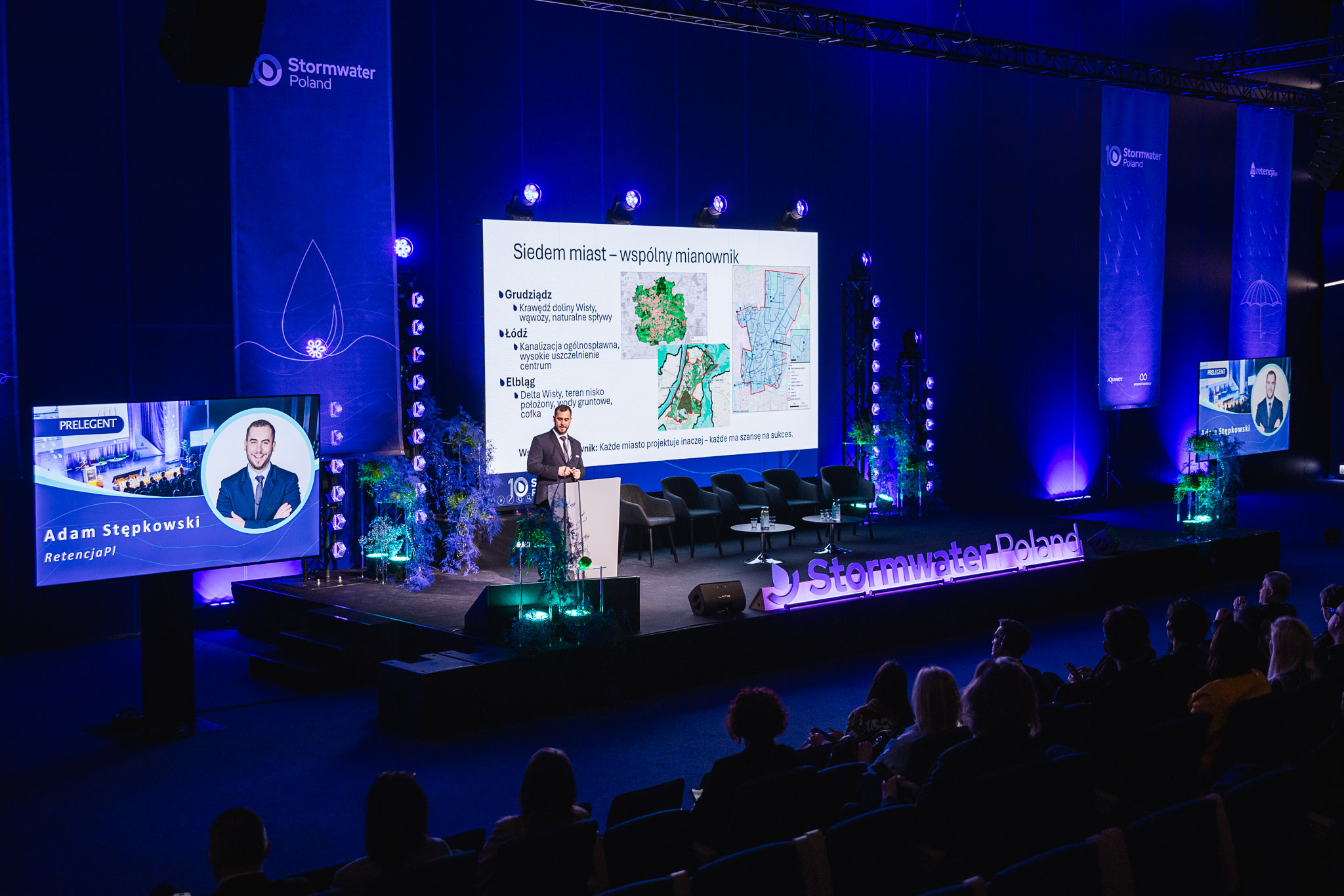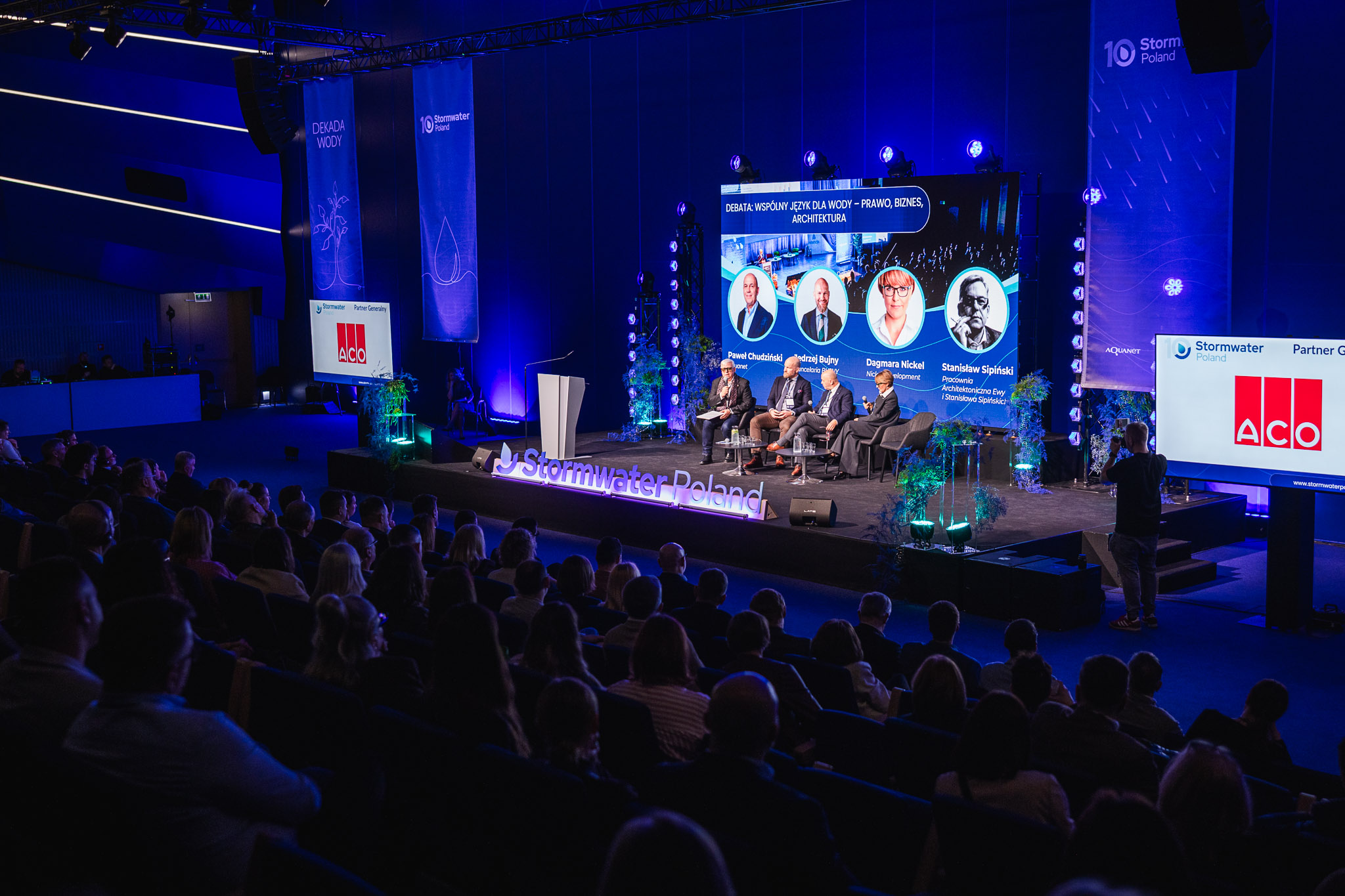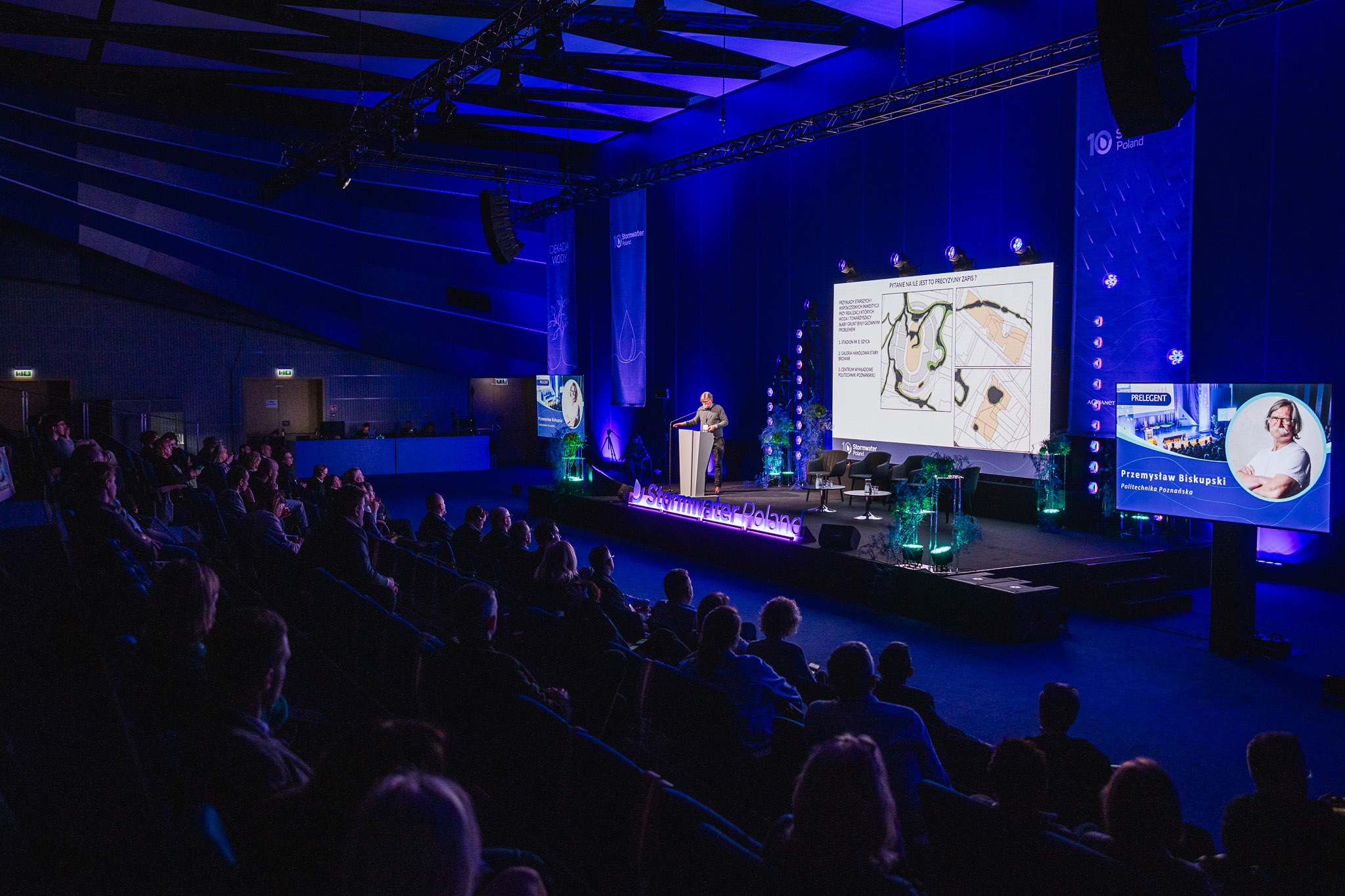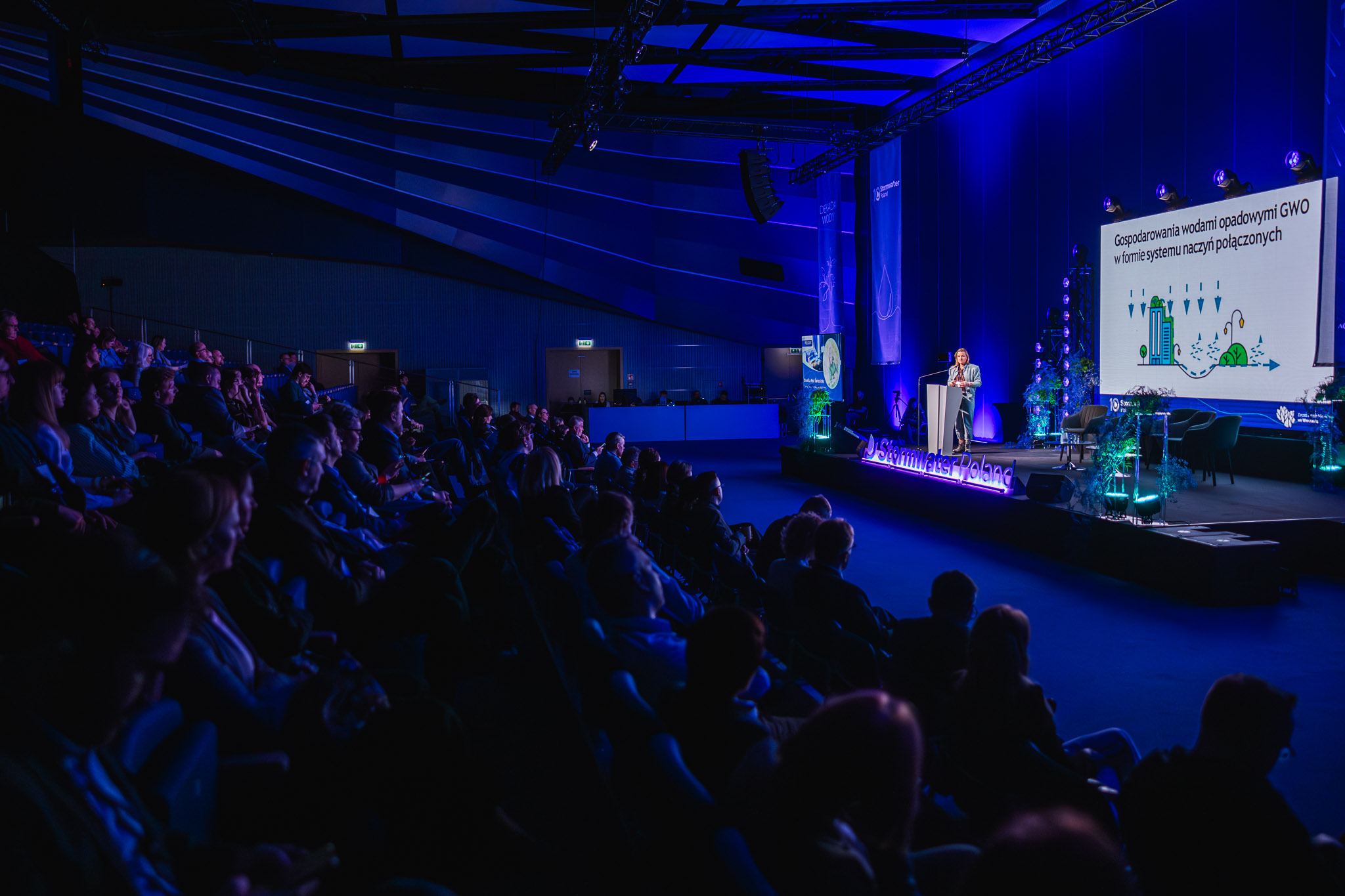 Konferencja zgromadziła ekspertów, przedstawicieli miast, administracji publicznej, nauki oraz sektora prywatnego, którzy wspólnie dyskutowali o przyszłości zarządzania wodą deszczową w miastach. W programie znalazły się wystąpienia światowych autorytetów w dziedzinie zielono-niebieskiej infrastruktury, koncepcji miast-gąbek, zrównoważonych systemów odwodnienia oraz nowoczesnych narzędzi analizy danych i sztucznej inteligencji w gospodarce wodnej.