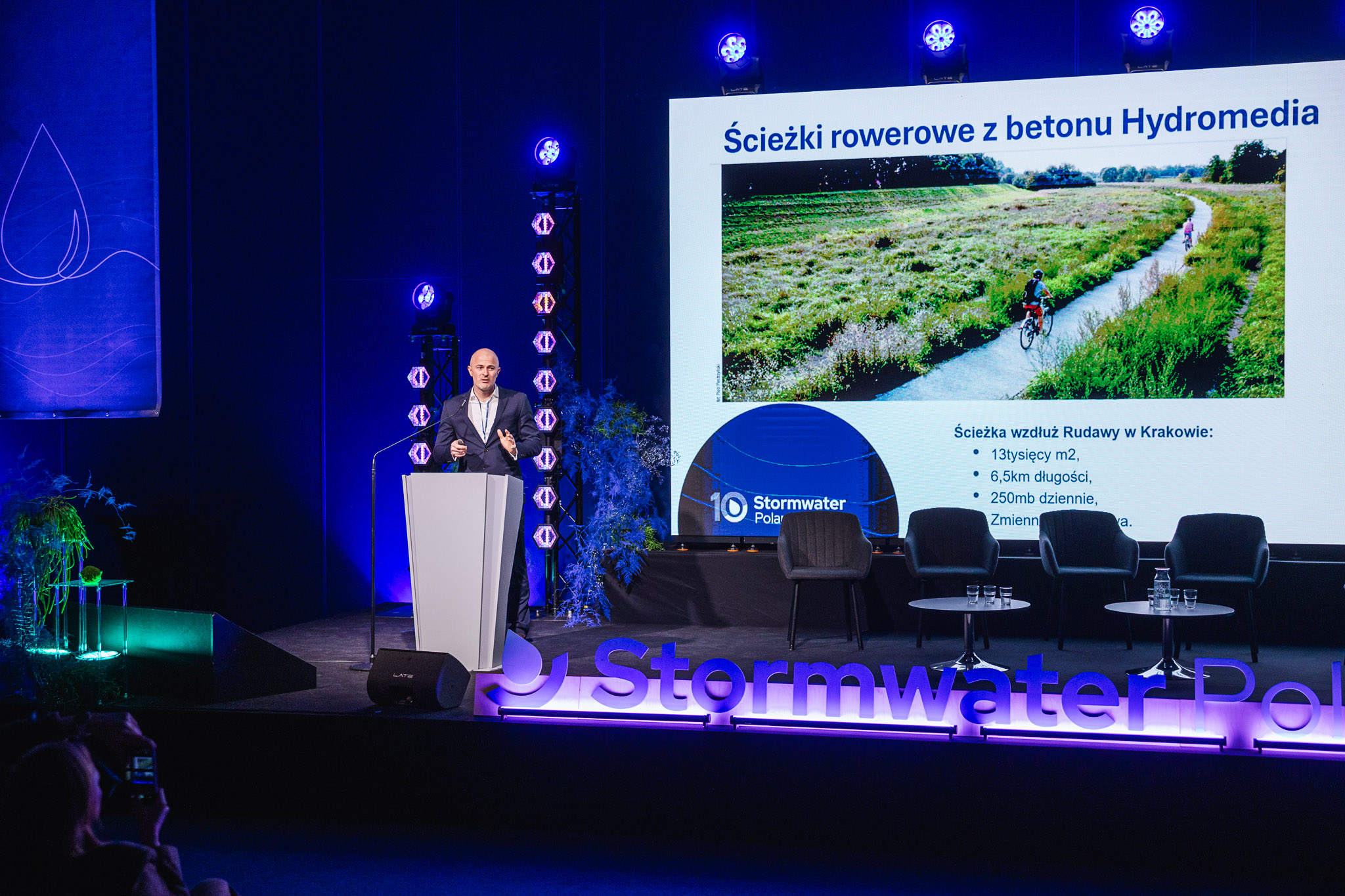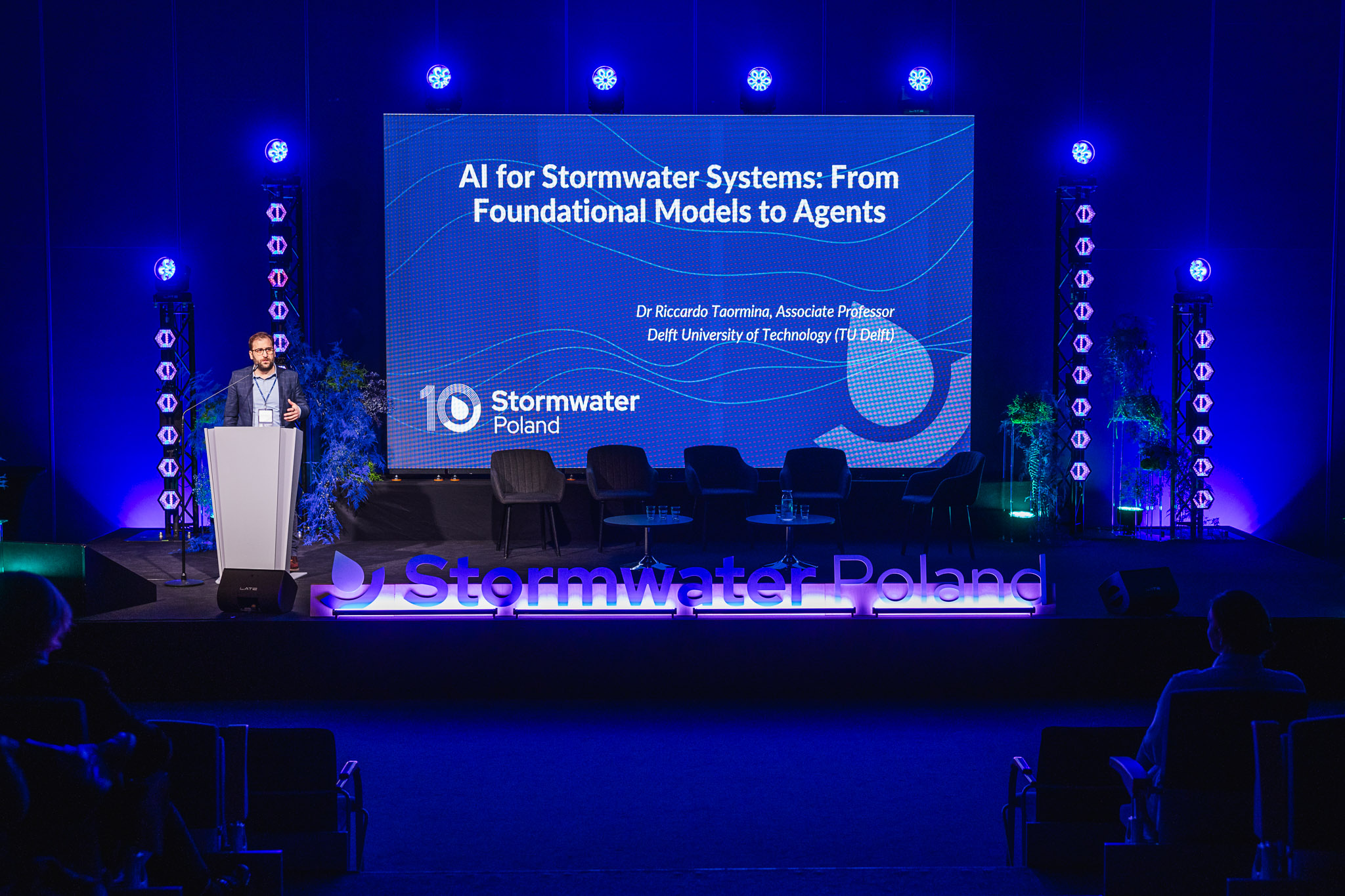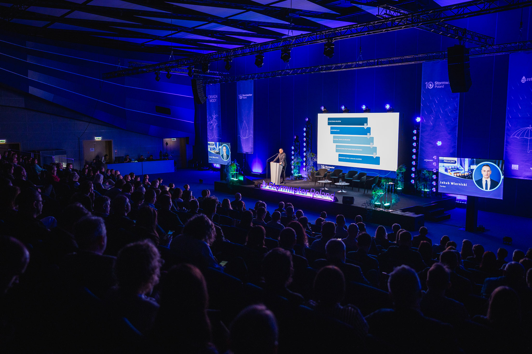 Konferencja zgromadziła ekspertów, przedstawicieli miast, administracji publicznej, nauki oraz sektora prywatnego, którzy wspólnie dyskutowali o przyszłości zarządzania wodą deszczową w miastach. W programie znalazły się wystąpienia światowych autorytetów w dziedzinie zielono-niebieskiej infrastruktury, koncepcji miast-gąbek, zrównoważonych systemów odwodnienia oraz nowoczesnych narzędzi analizy danych i sztucznej inteligencji w gospodarce wodnej.