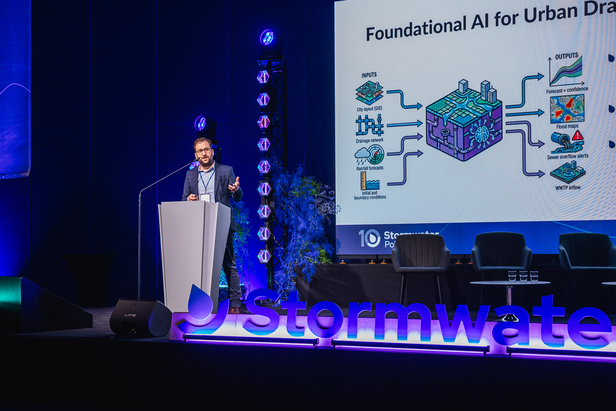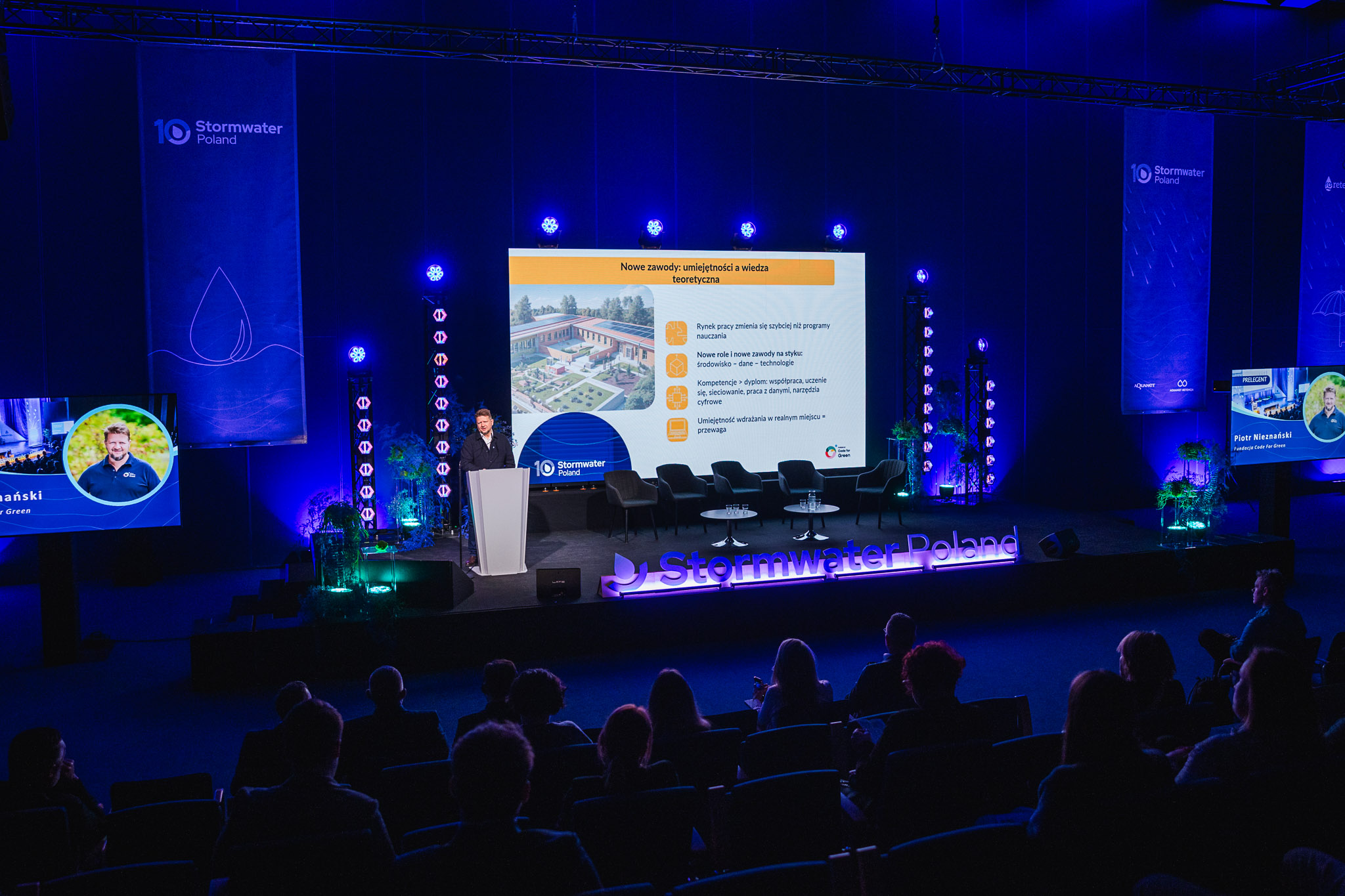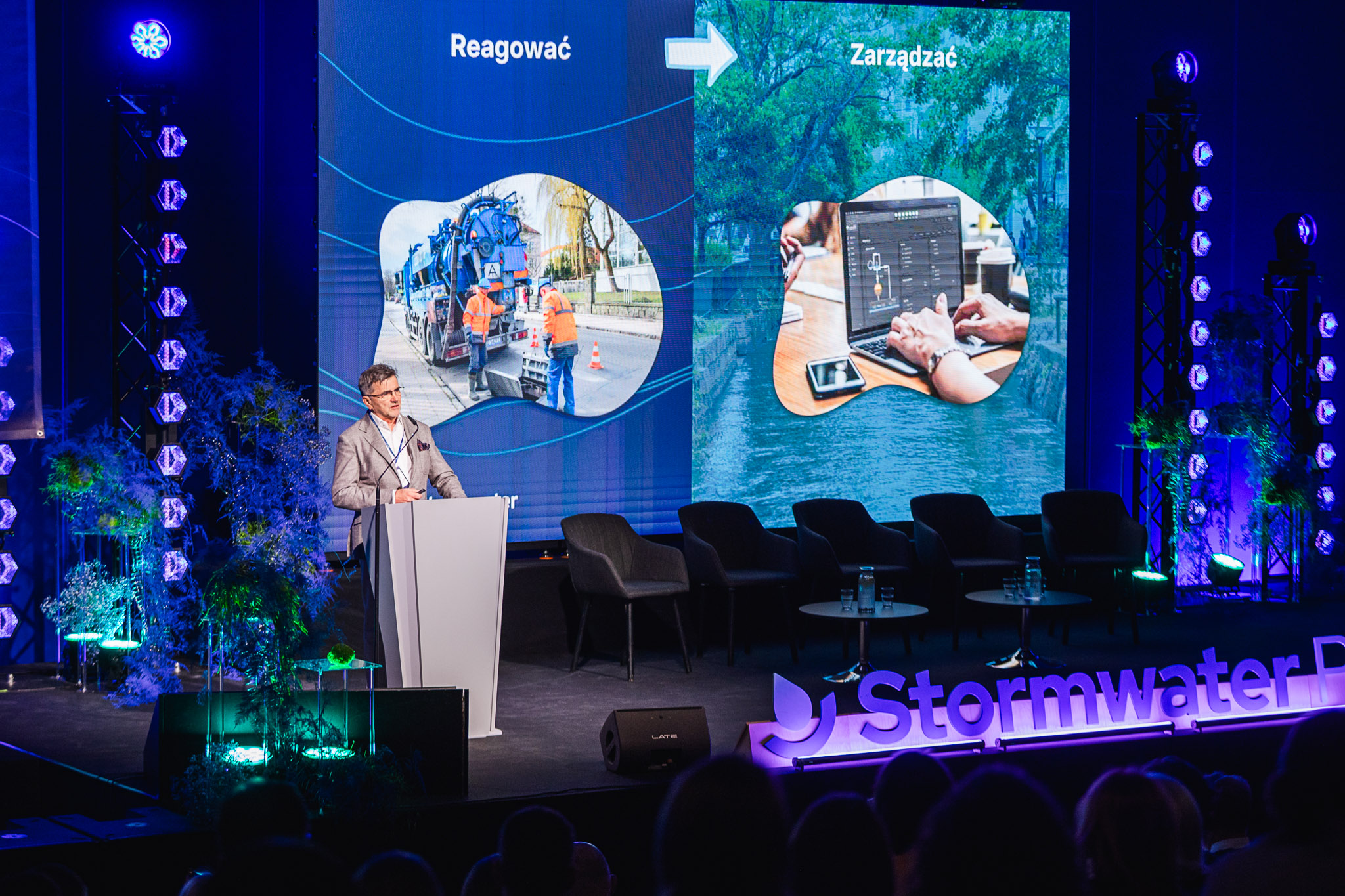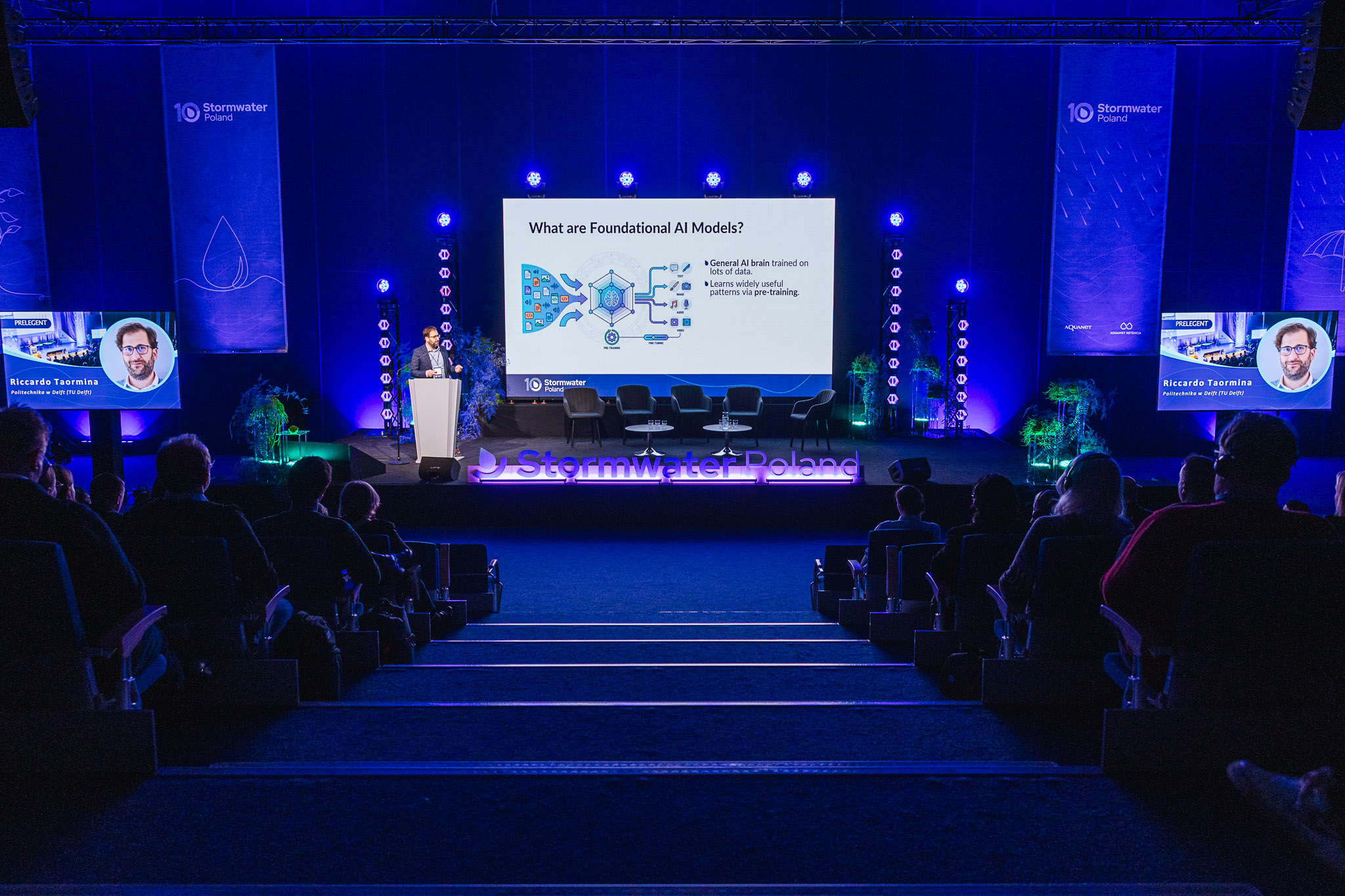 Konferencja zgromadziła ekspertów, przedstawicieli miast, administracji publicznej, nauki oraz sektora prywatnego, którzy wspólnie dyskutowali o przyszłości zarządzania wodą deszczową w miastach. W programie znalazły się wystąpienia światowych autorytetów w dziedzinie zielono-niebieskiej infrastruktury, koncepcji miast-gąbek, zrównoważonych systemów odwodnienia oraz nowoczesnych narzędzi analizy danych i sztucznej inteligencji w gospodarce wodnej.